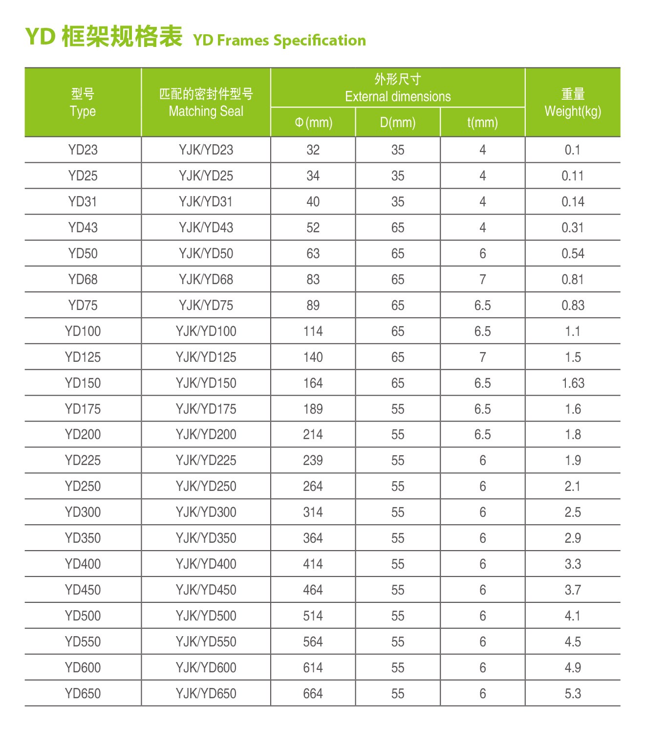 YD型圓形單根框架深度可根據(jù)實際情況定制,材料可根據(jù)客戶需要選用低碳鋼、不銹鋼或鋁等。